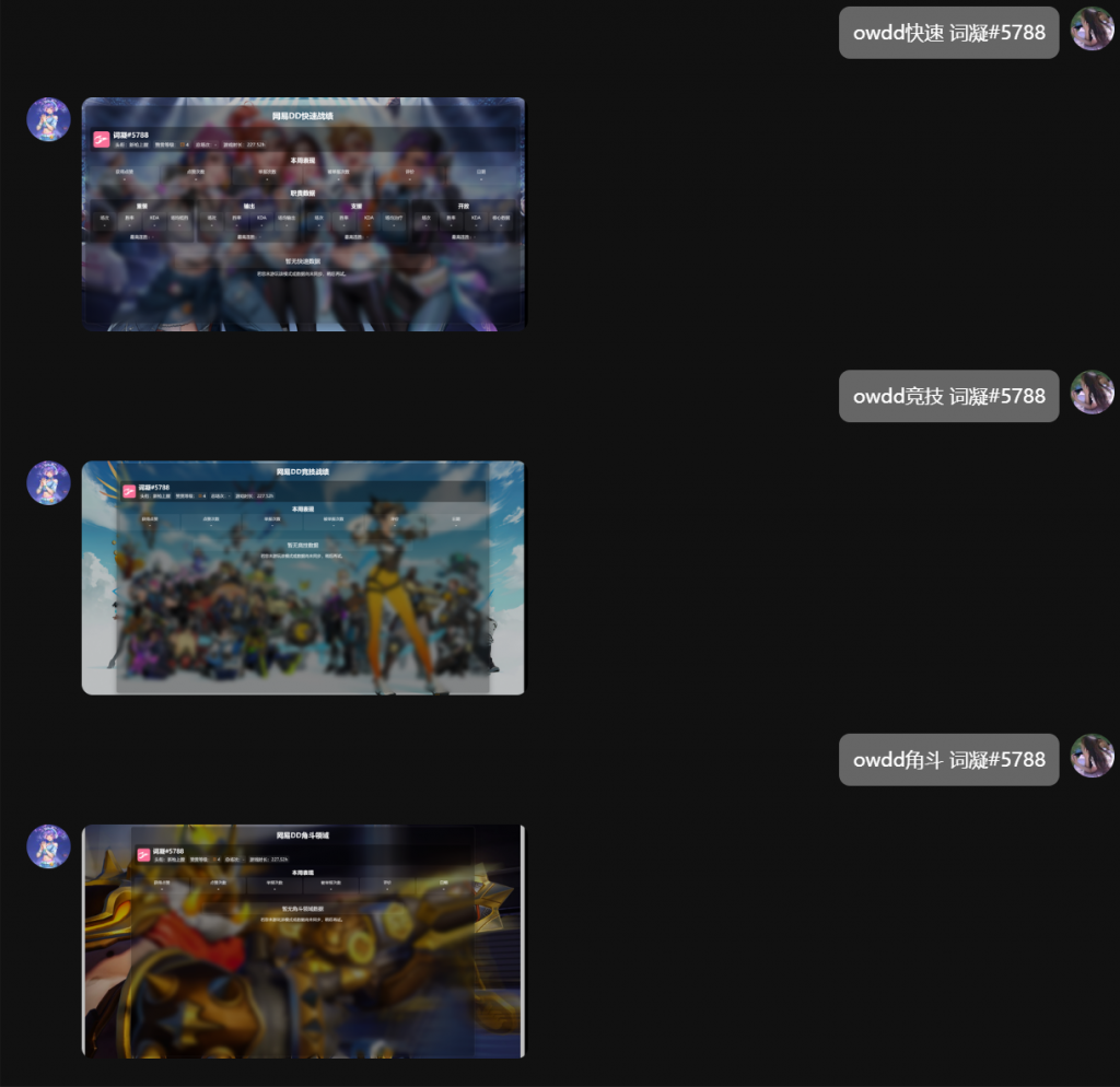 如果你没有绑定id或者想查询别人的数据又不想绑定,那么你可以发送owdd快速 [战网id],owdd竞技 [战网id],owdd角斗 [战网id]进行查询